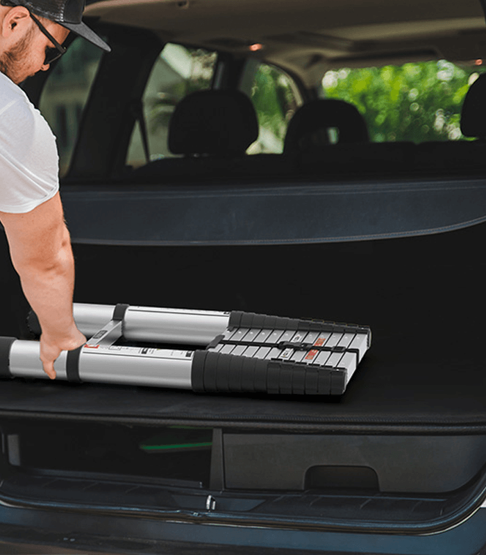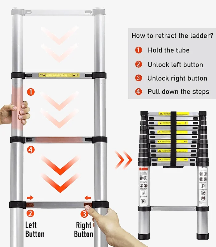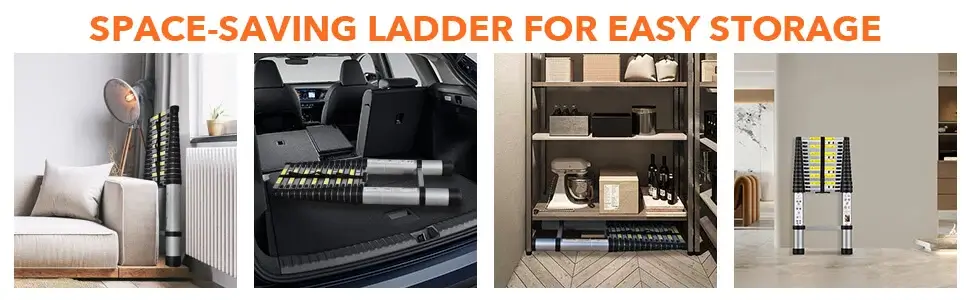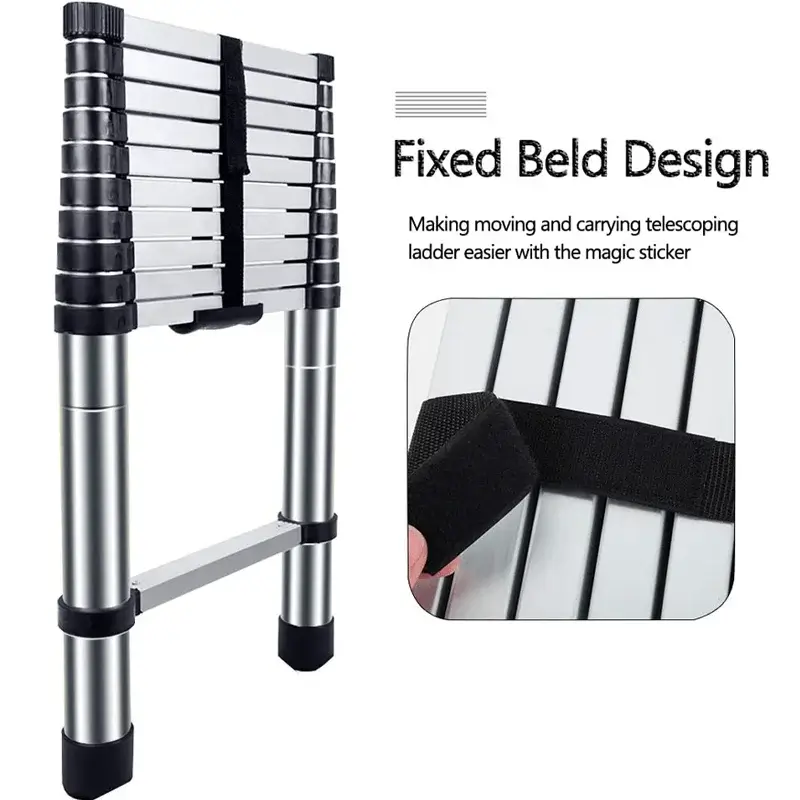 This collapsible and telescopic ladder is designed with storage belt and carrying handle, which is convenient for transportation and saves space. Our retractable ladder can be stored in your suitcase, behind the door or anywhere in your home/workplace.